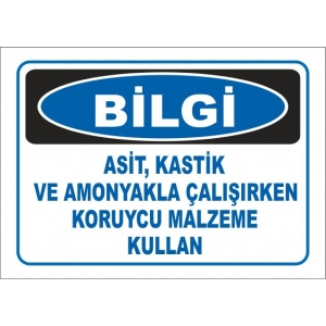 Asit ve Kastik ve Amonyakla Çalışırken Koruycu Malzeme Kullan Uyarı Levhaları (2838)