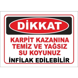 Karpit Kazanına Temiz ve Yağsız Su Koyunuz Uyarı Levhaları (2825)