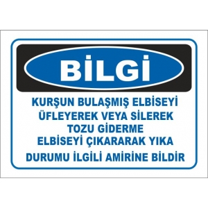 Kurşun Bulaşmış Elbiseyi Üfleyerek veya Silerek Tozu Giderme Uyarı Levhaları (2837)