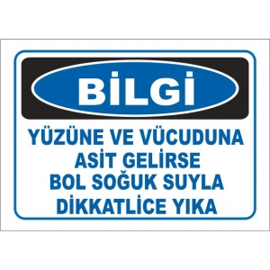 Yüzüne ve Vucuduna Asit Gelirse Bol Soğuk Suyla Dikkatlice Yıka Uyarı Levhaları (2840)