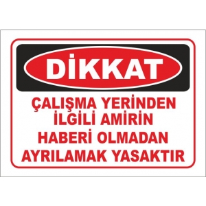 Çalışma Yerinden İlgili Amirin Haberi Olmadan Ayrılmak Yasaktır Uyarı Levhaları (3670)