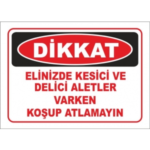 Elinizde Kesici ve Delici Aletler Varken Koşup Atlamayın Uyarı Levhaları (3669)