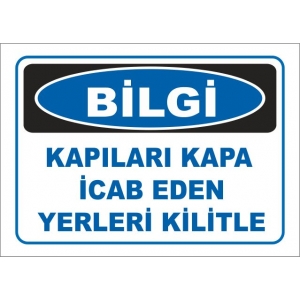 Kapıları Kapa İcap Edilen Yerleri Kilitlr Uyarı Levhaları (3609)