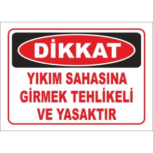 Yıkım Sahasına Girmek Tehlikeli ve Yasaktır Uyarı Levhaları (3603)
