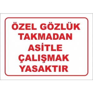 Özel Gözlük Takmadan Asitle Çalışmak Yasaktır Uyarı Levhaları (1104)