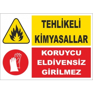 Tehlikeli Kimyasallar Koruycu Eldivensiz Girilmez İkaz Levhaları (1094)