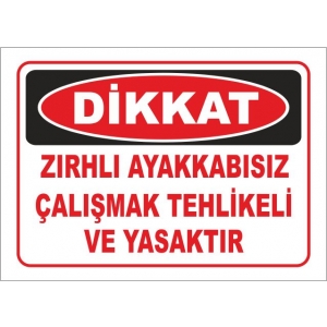 Zırhlı Ayakkabısız Çalışmak Tehlikeli ve Yasaktır İkaz Levhaları (1102)