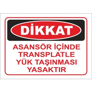 Asansör İçinde Transplatle Yük Taşınması Yasaktır Uyarı Levhaları (1296)