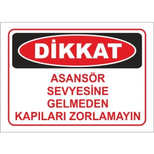 Asansör Seviyesine Gelmeden Kapıları Zorlamayın İkaz Levhaları (1295)