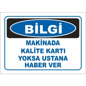 Makinada Kalite Kartı Yoksa Ustana Haber Ver Uyarı Levhası (2332)