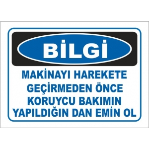 Makinayı Harekete Geçirmeden Önce Koruycu Bakımın Yapıldığından Emin ol Uyarı Levhaları (2327)