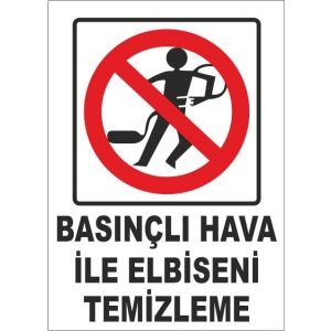 Basınçlı Hava İle Elbiseni Temizleme Uyarı Levhası (3301)