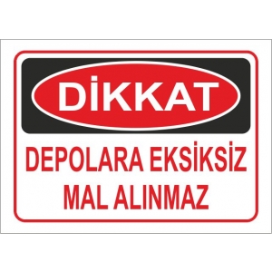 Depolara Eksiksiz Mal Alınız Uyarı Levhası (396)