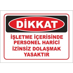 İşletme İçerisinde Personelden Harici İzinsiz Olarak Dolaşmak Yasaktır Uyarı Levhaları (3666)