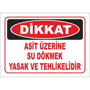 Asit Üaerine Su Dökmek Tehlikeli ve Yasaktır Tabelası (2898)