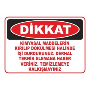 Kimyasalların Dökülüp Kırılması Halinde Dikkat Levhaları (2901)