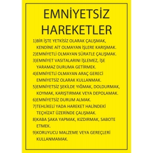 Emniyetsiz Hareketler İş Güvenliği Talimat Levhaları (T33)
