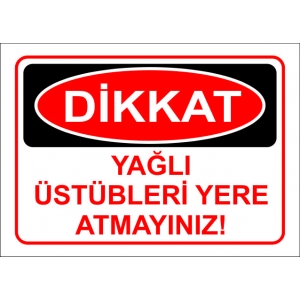 Yağlı Üstüpleri Yere Atmayınız Uyarı Tabelası (296)