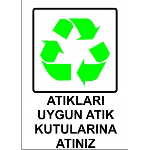 Atıkları Uygun Atık Kutularına Atınız Uyarı Levhası (218)