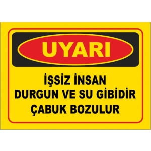 İşsiz İnsan Durgun ve Su Gibidir Çabuk Bozulur Uyarı Levhası (2221