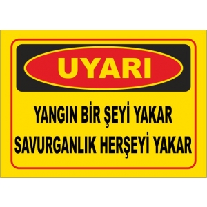 Yangın Bir Şeyi Yakar Savurganlık Herşeyi Yakar Uyarı Levhaları