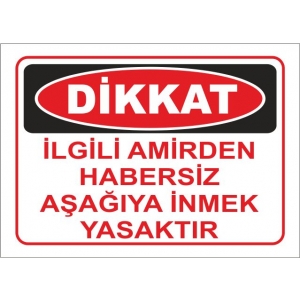 İlgili Amirden Habersiz Aşağıya İnmek Yasaktır Uyarı Levhası (914)
