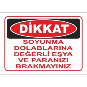 Soyunma Dolaplarınıza Değerli Eşya ve Paranızı Koymayınız Uyarı Levhaları (915)